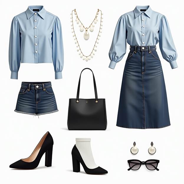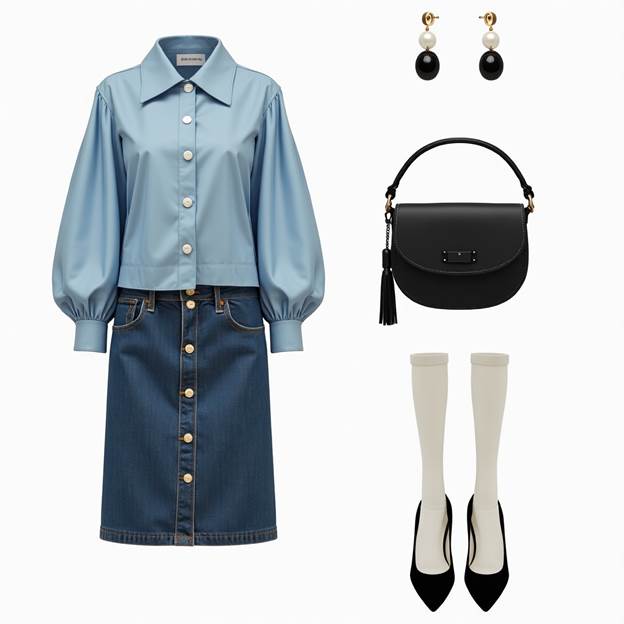 1. Denim Skirt with a Soft Pastel Blue Shirt