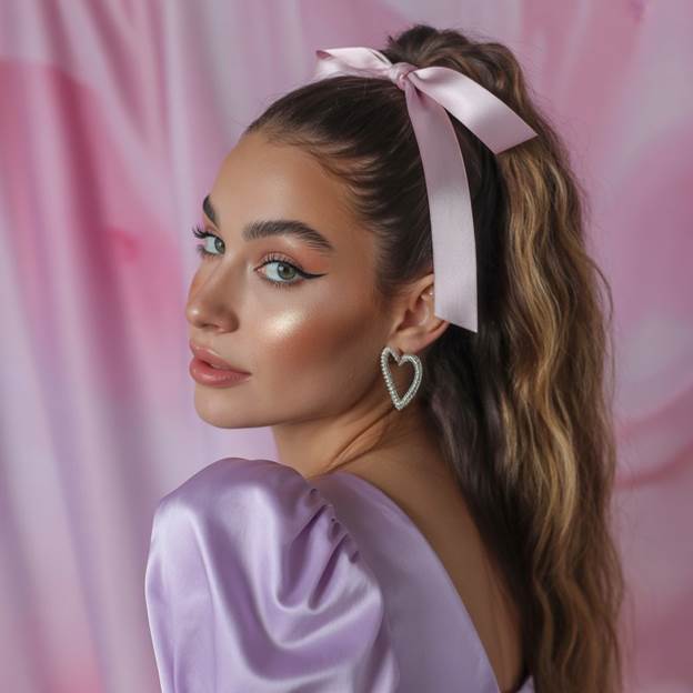 - High Pony with Satin Bow: Coquette Aesthetic Alert