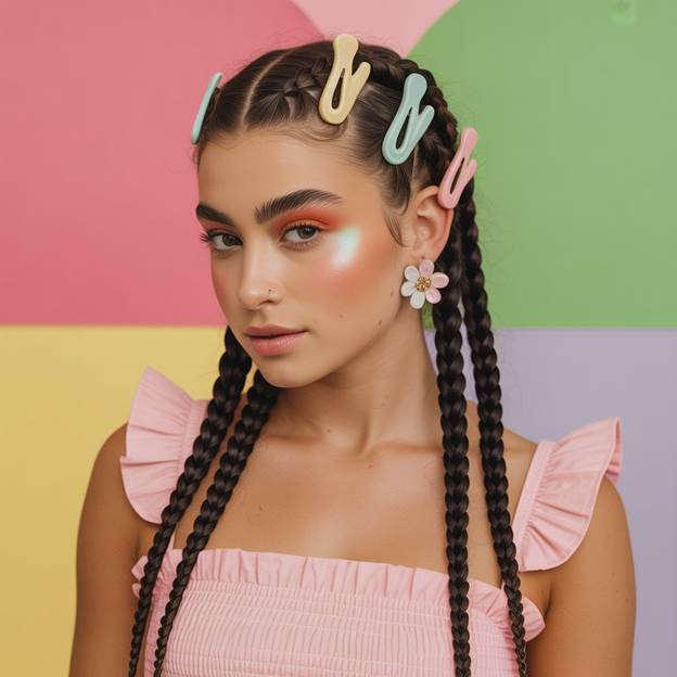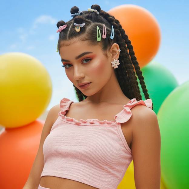 - Mini Bubble Braids with Pastel Clips – Playful & Pretty