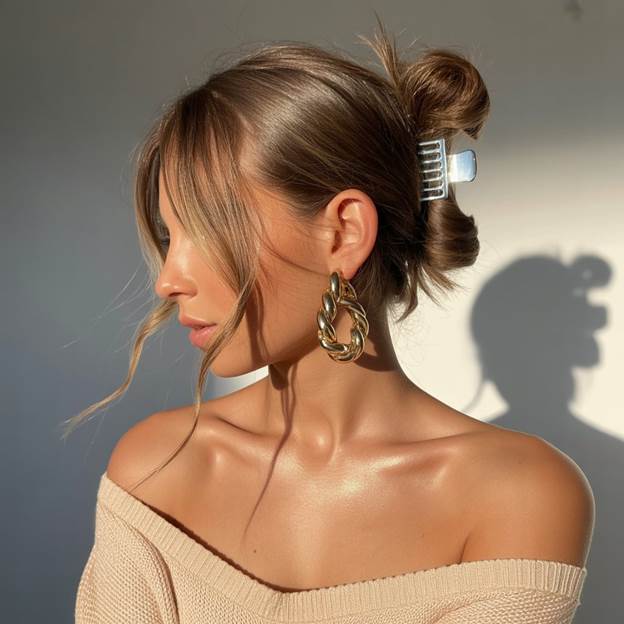 - Messy Claw Clip Bun for That Off-Duty Cool Girl Look