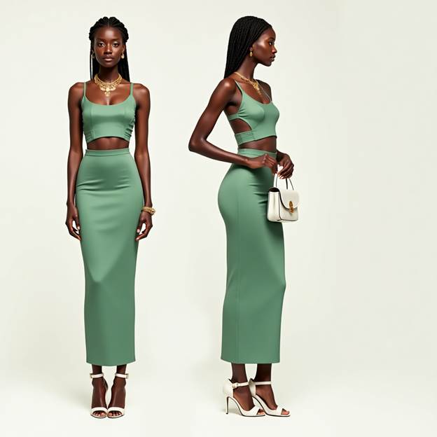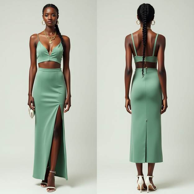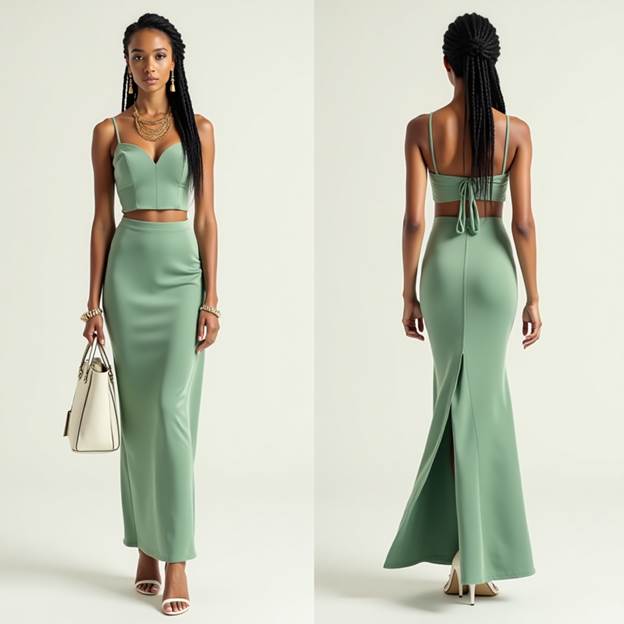 🌊 5. Sea Green Crop Top + Sea Green Skirt